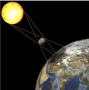 - В узкой области земной поверхности, куда падает тень от Луны, будет видно кольцеобразное солнечное затмение