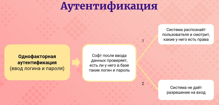 - После логина система запрашивает пароль. Пользователь его вводит. Система находит совпадение и соглашается, что пароль верный.