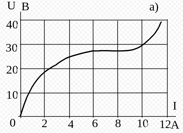 Вольтамперная характеристика некоторого нелинейного элемента показана на рисунке. Определите дифференциальное сопротивление этого элемента при силе тока равной 7 Ампер. Ответ выразите в Омах и округлите до целого числа.