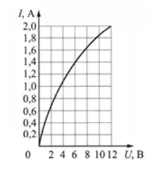 ВАХ электрической лампы представлена на рисунке. Определите мощность, выделяемую на лампе при напряжении 6В. Ответ дать в Ваттах и округлить до десятых.