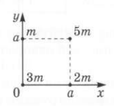 В вершинах квадрата со стороной \(а=1метр\) находятся точечные массы, как показано на рисунке. С квадратом связана система координат. Найдите координаты центра тяжести системы. Выразите координаты в сантиметрах и запишите через запятую (сначала координату x, затем y)