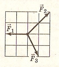 На тело действуют три силы, изображенные на рисунке. Известно, что сила \(F_1\) = 10 Н. Чему равна равнодействующая сила, приложенная к телу? Ответ дать в Ньютонах, в ответе записать только число.