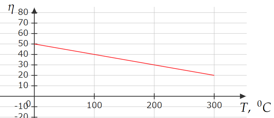 На рисунке представлен график зависимости КПД теплового двигателя в % от температуры холодильника. Найдите по графику температуру нагревателя, если известно, что она постоянная. Ответ дайте в градусах Цельсия.