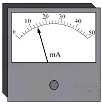 При помощи миллиамперметра измеряется ток в некоторой электрической цепи. Миллиамперметр изображён на рисунке. Чему равен ток в цепи, если погрешность прямого измерения тока составляет половину цены деления миллиамперметра? Ответ приведите в миллиамперах. В ответе запишите значение и погрешность слитно без пробела.