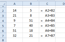 რისი ტოლი იქნება C1 უჯრის მნიშვნელობა, თუ მასში შევიტანთ ფორმულას =A1+B1?