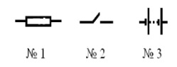 .Под каким номером изображено на рисунке условное обозначение электролампы?