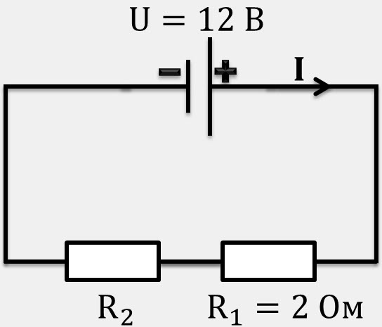 Используя схему цепи, найдите силу тока в ней, если напряжение на втором резисторе составляет 8 В.