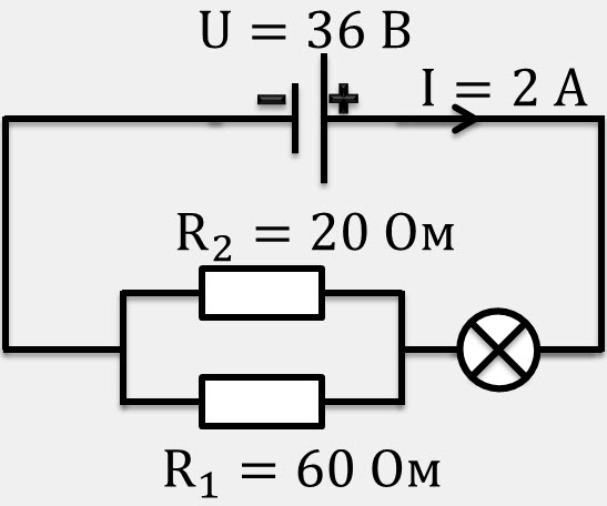 Найдите сопротивление лампочки, используя данные на схеме электрической цепи