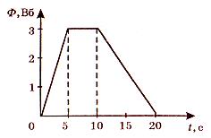 Оромду (катушканы) каптап өтүүчү магнит агымы, убакыттын өтүшү менен, сүрөттө көрсөтүлгөндөй тартипте өзгөрөт. Индукциянын ЭККнүн модулу убакыттын кайсы аралыгында максималдык мааниге ээ болот?