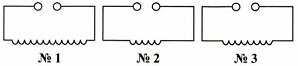 На схемах условными знаками изображены катушки, отличающиеся друг от друга только числом витков. Какая из них окажет наименьшее магнитное действие при равных силах тока в них?