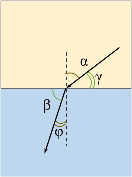 Какой из углов на рисунке является углом преломления?