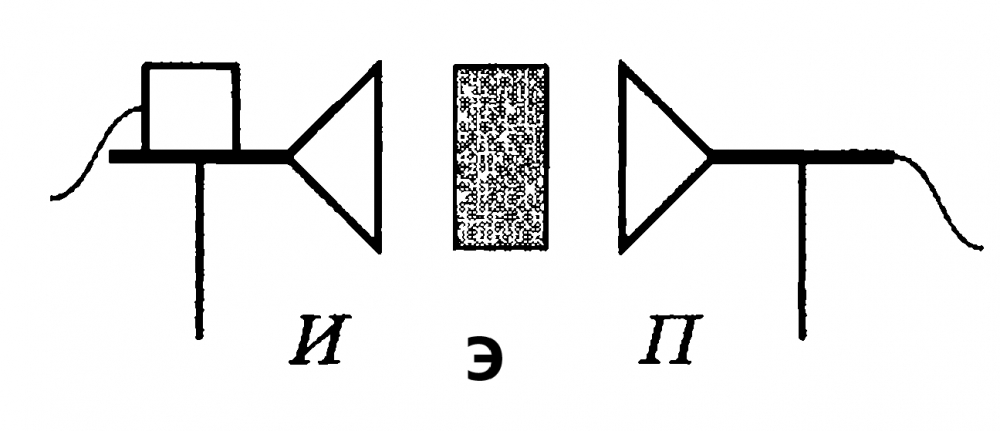 Если между рупорным излучателем ЭМВ и рупорным приемником, поместить эбонитовую пластину Э, то энергия ЭМВ, попавших в приемник, по сравнению с энергией ЭМВ излучателя будет .....