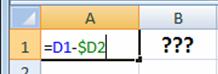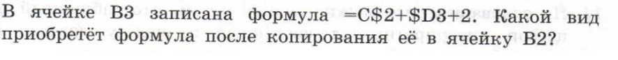 В ячейке А1 электронной таблицы записана формула =D1-$D2. Какой вид приобретет формула после того, как ячейку А1 скопируют в ячейку В1?