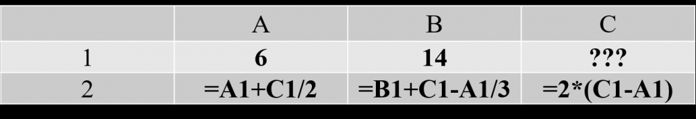 Какое число должно быть записана в ячейке C1, чтобы построенная после выполнения вычислений диаграмма по значениям диапазона ячеек A2:C2 соответствовала рисунку: