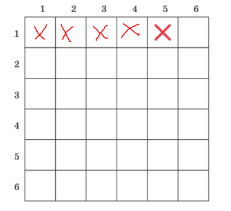 По результатам одновременного подбрасывания двух игральных кубиков получили следующую таблицу элементарных событий. В каких последовательностях могли выпасть игральные кубики перед внесением данных в таблицу?