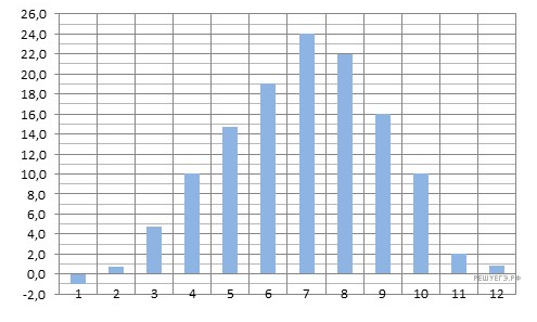 На диаграмме показана среднемесячная температура воздуха в Симферополе за каждый месяц 1988 года. По горизонтали указываются месяцы, по вертикали — температура в градусах Цельсия. Определите по диаграмме, сколько было месяцев, когда среднемесячная температура превышала 20 градусов Цельсия.