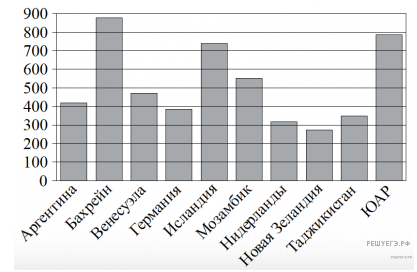 На диаграмме показано распределение выплавки алюминия в 10 странах мира (в тысячах тонн) за 2009 год. Среди представленных стран первое место по выплавке алюминия занимал Бахрейн, десятое место — Новая Зеландия. Какое место занимала Исландия?