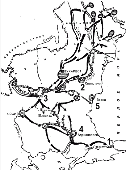 Напишите название обозначенной на карте цифрой «3» крепости, которая в ходе войны длительный период осаждалась основными силами русской армии.