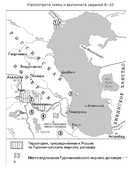 Назовите российского императора, в годы правления которого был заключён мирный договор, место подписания которого обозначено на схеме. В ответ запишите его имя и порядковый номер (например, Александр Третий).