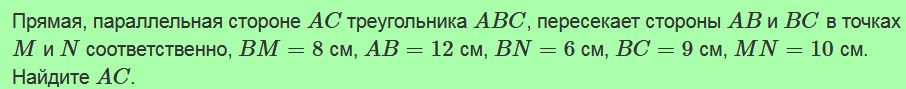 Треугольники ABC и KMN подобны. AB:KM=BC:MN=AC:KN, AB=15,2 см, BC=21,6 см, KM=3,8 см. Найдите MN.