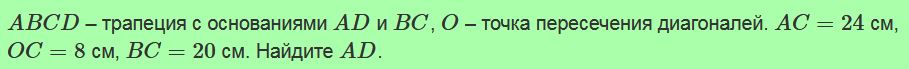Отрезки AB и CD пересекаются в точке O, AO=24 см, BO=8 см, CO=60 см, DO=20 см. Чему равен отрезок AC, если DB= 18cм?