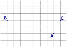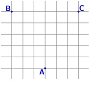 На клетчатой бумаге с размером клетки 1 см × 1 см отмечены точки А, В и С. Найдите расстояние от точки А до середины отрезка ВС. Ответ выразите в сантиметрах.