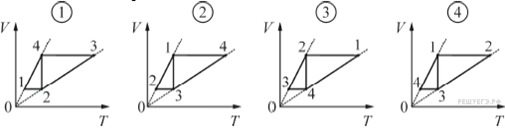 На каком из следующих рисунков эти циклические процессы правильно изображены на VT-диаграмме?