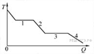 На рисунке показан график изменения температуры Т вещества при постоянном давлении по мере выделения им количества теплоты Q. В начальный момент времени вещество находилось в газообразном состоянии. Какие участки графика соответствуют конденсации пара и остыванию вещества в твёрдом состоянии?