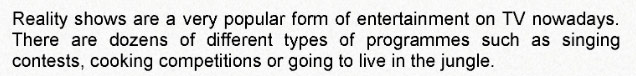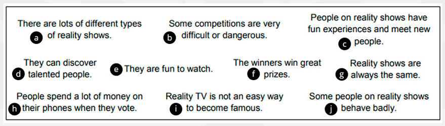 Read the arguments. Are theу FOR 1) or AGAINST 2) the reality TV shows?
