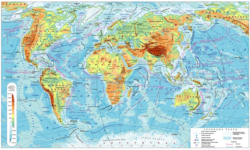 природные объекты: материки, океаны, моря, заливы, проливы, озера.