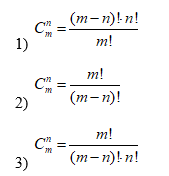 - соединения, каждое из которых содержит n элементов, взятых из данных m разных элементов, и которые отличаются друг от друга по крайней мере одним элементом