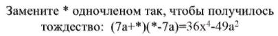 Подставьте вместо знака * одночлен так, чтобы получилось тождество: