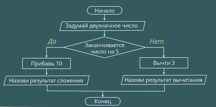 Алгоритм с ветвлением содержит блок выбора, в котором есть