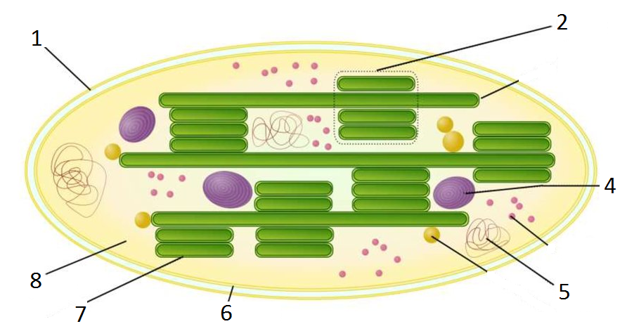 Под какими номерами указаны правильные назвния структуры хлоропласта.