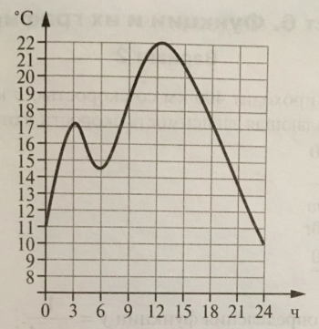 На рисунке показано изменение температуры воздуха в городе Архангельске на протяжении суток. По горизонтали указано время суток, по вертикали - значение температуры в градусах Цельсия. Найдите разность между наибольшим и наименьшим значением температуры. Ответ дайте в градусах Цельсия.