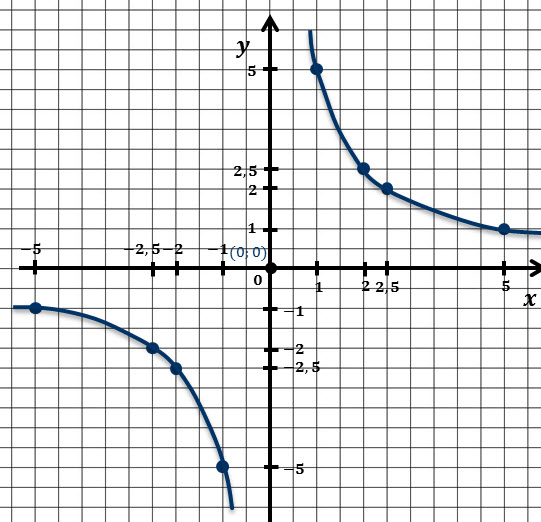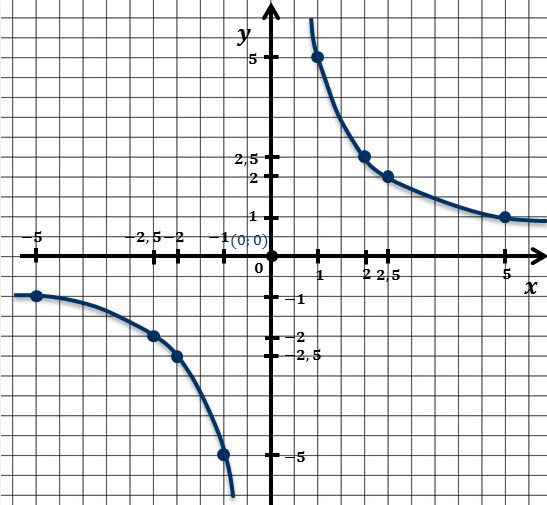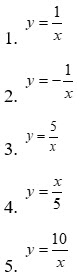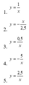 Задайте формулой обратную пропорциональность, зная, что ее график проходит через точку A (0,5; 5).