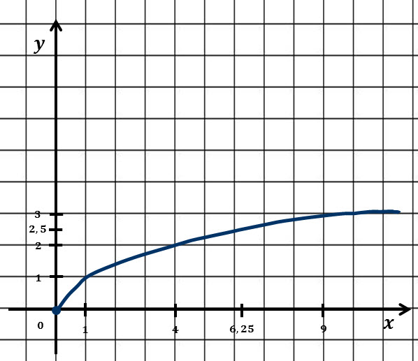 - Если х > 0, то и y > 0. График расположен в первой координатной четверти.