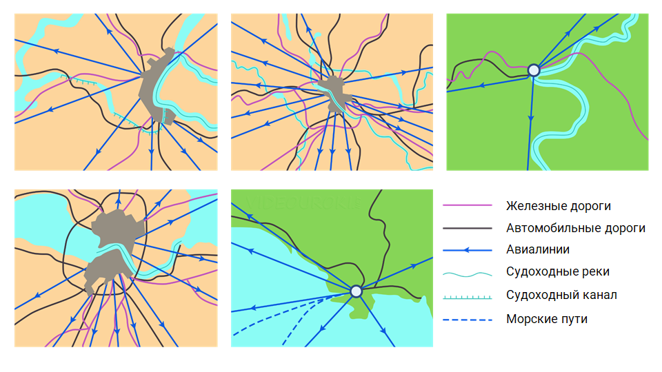 Пункты, в которых сходятся несколько видов транспорта и осуществляется обмен грузов между ними.