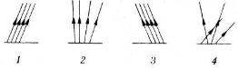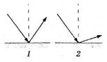На рисунке изображены падающий и отраженный лучи света. На каком из рисунков показан правильный ход лучей?