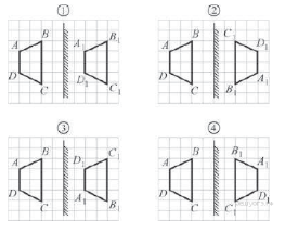 Предмет ABCD отражается в плоском зеркале. Изображение A1B1C1D1 этого предмета в зеркале правильно показано на рисунке