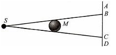 Какие буквы обозначают границы тени непрозрачного тела М на экране? S — точечный источник света.