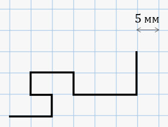 Найдите длину ломаной, изображённой на рисунке, если известно, что длина стороны одной клеточки равна 5 мм.