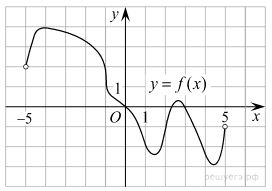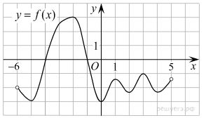 На рисунке изображен график функции y = f(x), определенной на интервале (−5; 5). Найдите количество точек, в которых касательная к графику функции параллельна прямой y = 6 или совпадает с ней.