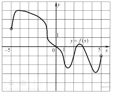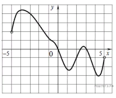 На рисунке изображен график функции определенной на интервале (−5; 5). Определите количество целых точек, в которых производная функции