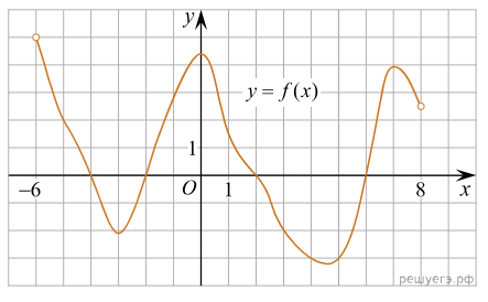 На рисунке изображен график функции y = f(x), определенной на интервале (−6; 8). Определите количество целых точек, в которых производная функции положительна.