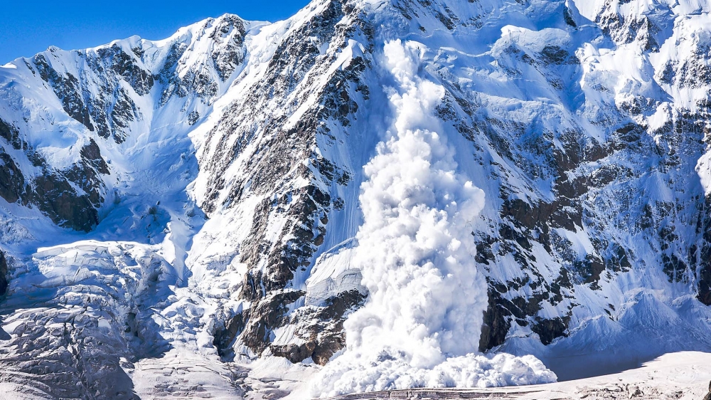 - a large mass of snow falling down the side of a mountain