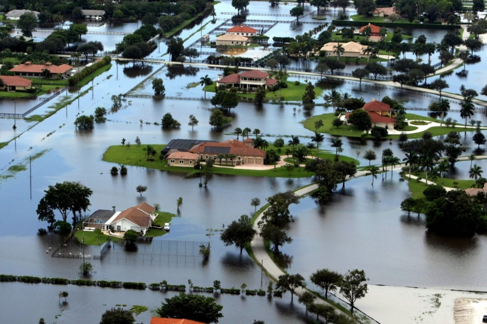 - large amount of water that covers an area which is usually dry