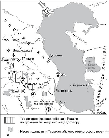 «10 февраля в маленькой деревушке Туркманчай был подписан составленный А. С. Грибоедовым мирный трактат. Шах вынужден был не только отказаться от реваншистских притязаний на Грузию и Северный Азербайджан, но и уступить России территорию Восточной Армении с городами ___________ и Нахичевань.