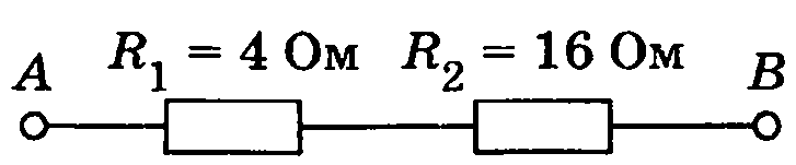 Определите напряжение на концах проводников R1 и R2 (смотри рисунок), если сила тока в цепи АВ равна 2,5 А. Что покажет вольтметр, если его подключить к клеммам АВ?