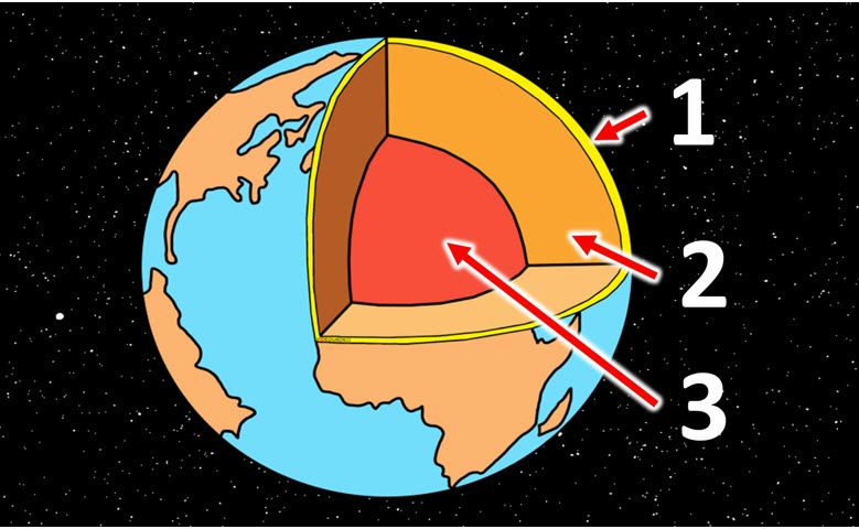 Соотнеси названия внутренних оболочек Земли с цифрами, которыми они обозначены на рисунке.